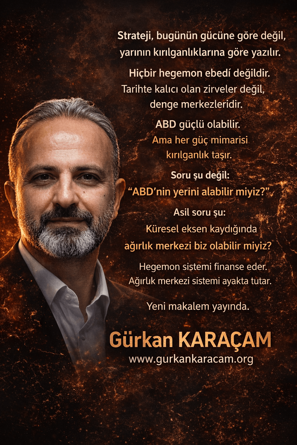 Soru artık şu değil: Türkiye ABD’nin yerini alabilir mi? Asıl soru şudur: Türkiye kendi stratejik mimarisini inşa ederek sistemin ağırlık merkezini kendine doğru kaydırabilir mi? Çünkü gerçek güç, yer değiştirmek değil; ekseni en yüksek getiri ile lehine değiştirmektir.
