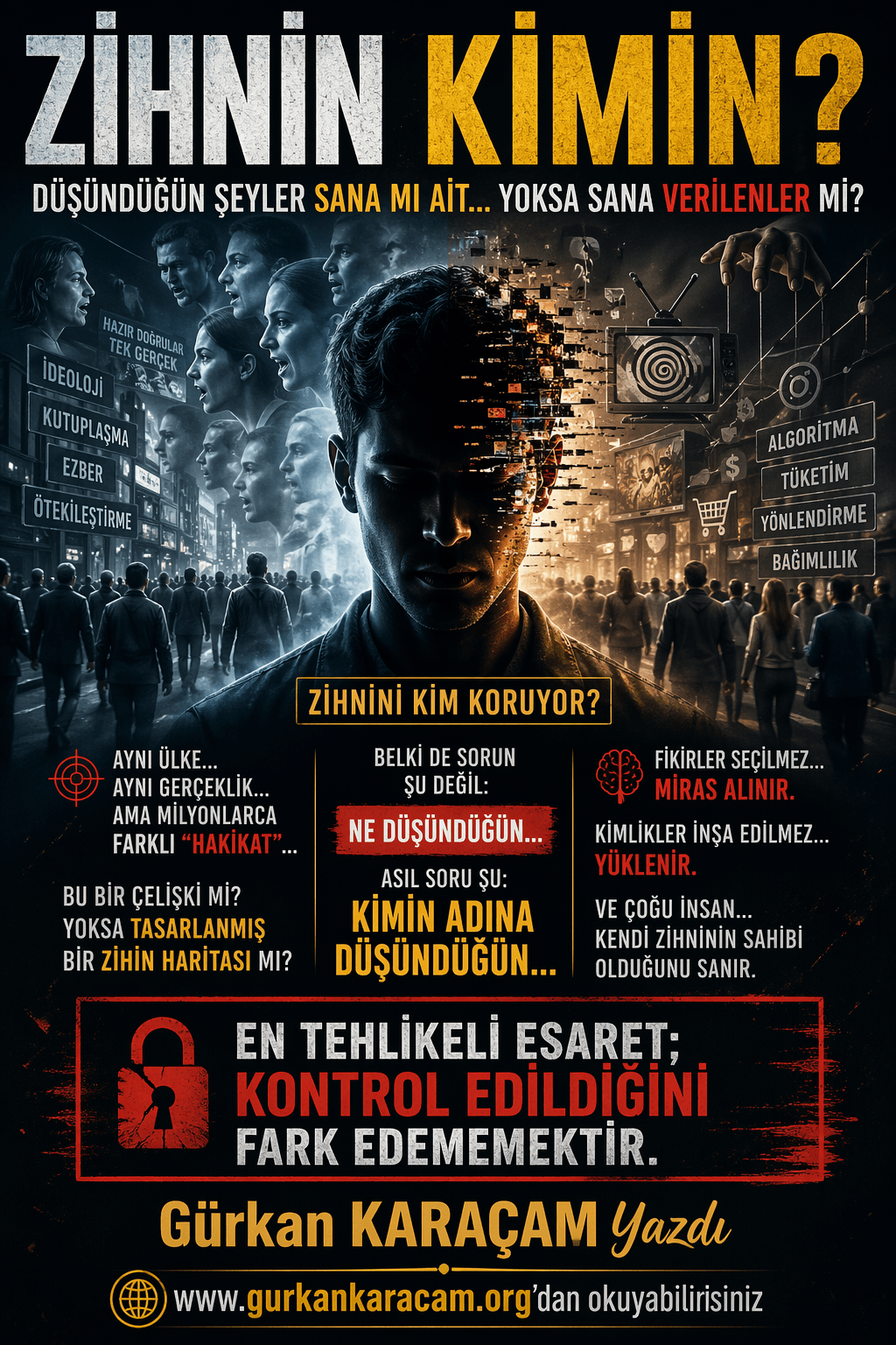 Unutmayın! En tehlikeli esaret, kontrol edildiğini fark edememektir. Şimdi aynaya bakın ve dürüstçe sorun: “Düşündüğüm her şey gerçekten bana mı ait?”